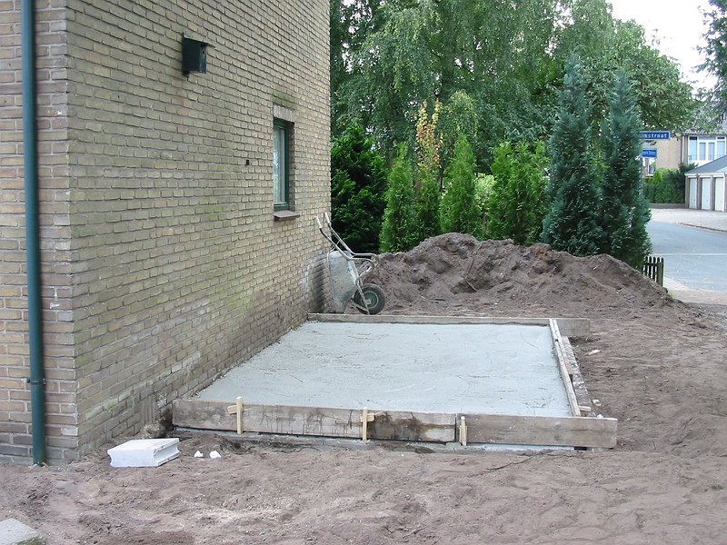 Ook de vloer van de uitbouw van de woonkamer is gestort.