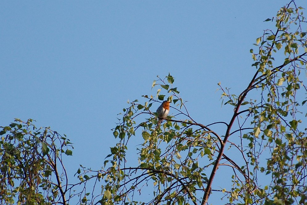 Terug op de camping worden we al zingend verwelkomd door dit roodborstje?.