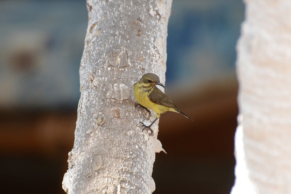 Paartje Double-collared Sunbird op één van de vele drinkbakken die overal op de lodge geplaatst zijn.