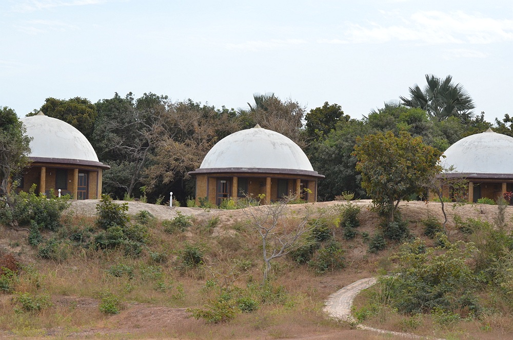 De Lamin Lodge, een volledig houten restaurant, gebouwd tussen de mangrove.