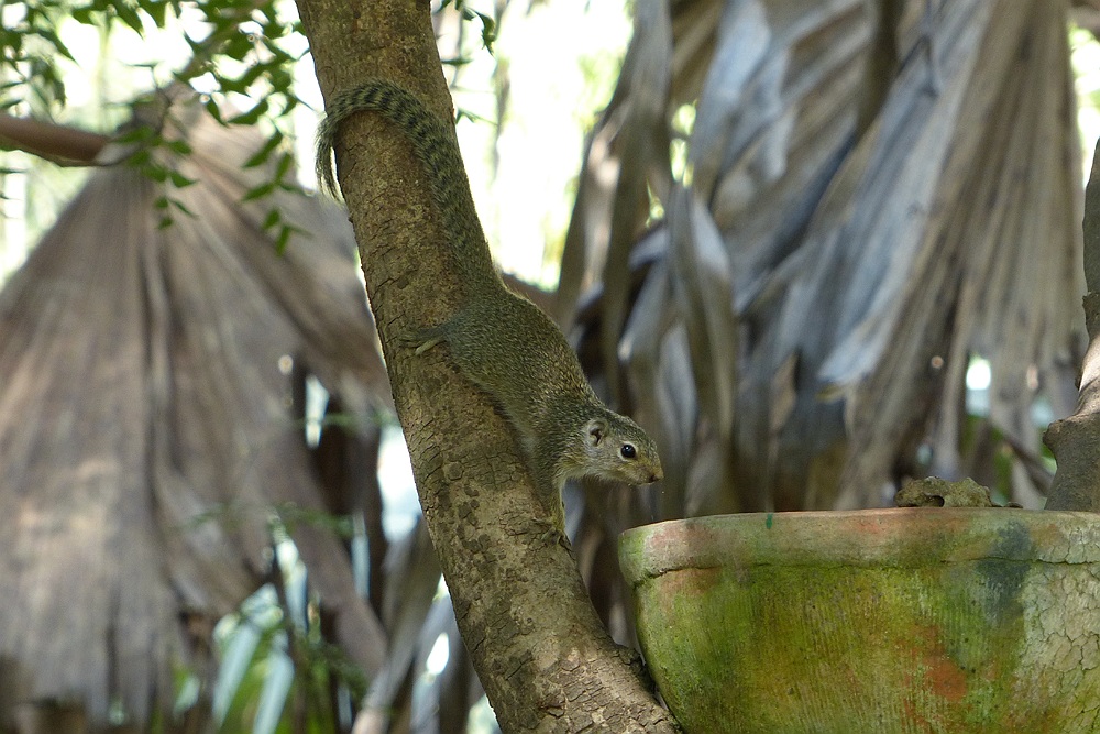 De eveneens in het park levende Blue Vervet Monkeys zijn minder schuw.