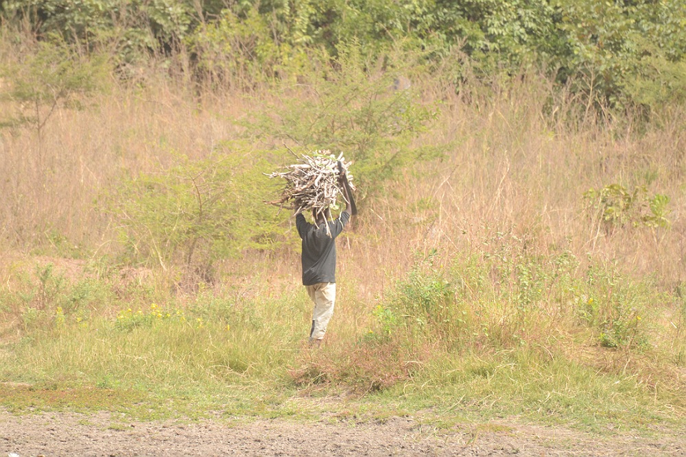 Deze man heeft brandhout gesprokkeld voor thuis.