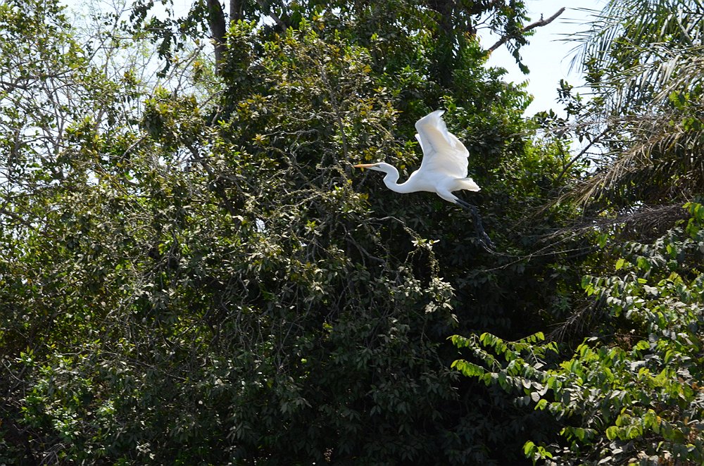 Grote zilverreiger in de vlucht.