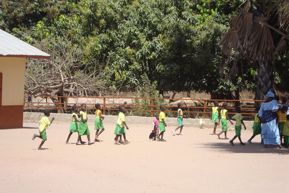 De schoolbel heeft geklonken en de kinderen komen naar buiten.