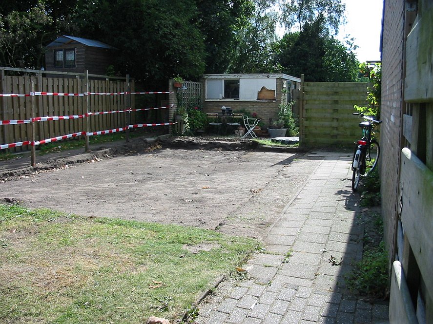 Het schuurtje is gesloopt en de tuin achter de garage is bouwrijp gemaakt.