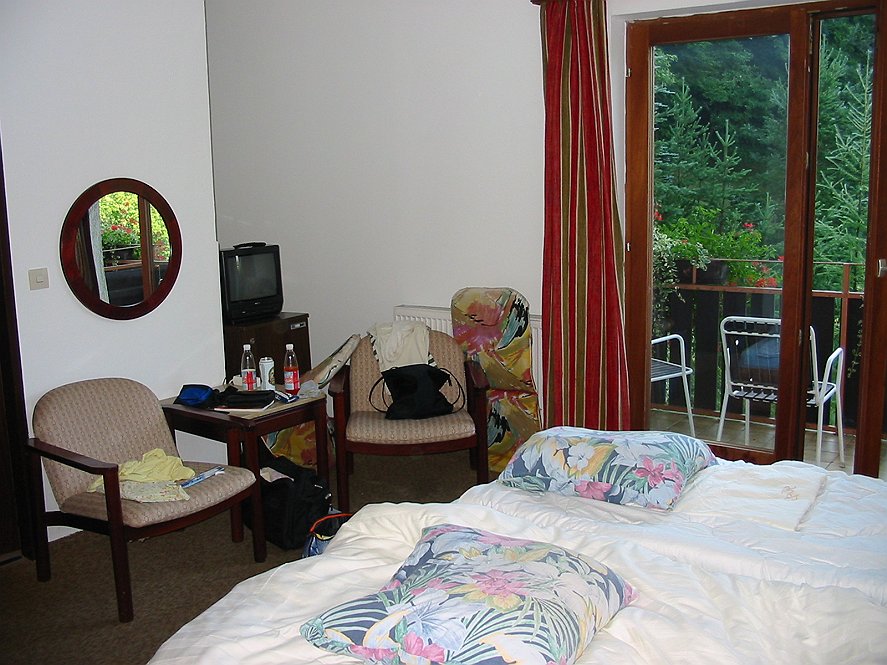 Op de heenreis overnachten we in Alland in het Wienerwald. Het uitzicht vanuit onze hotelkamer.