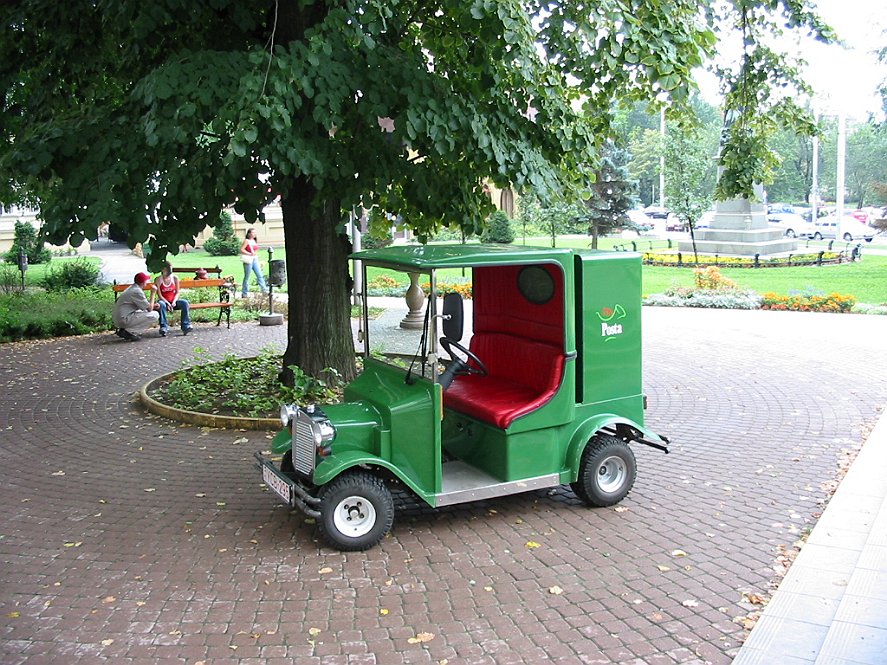 Het centrum van de stad is autovrij. De posterijen rijden hier met kleine electrische autootjes.