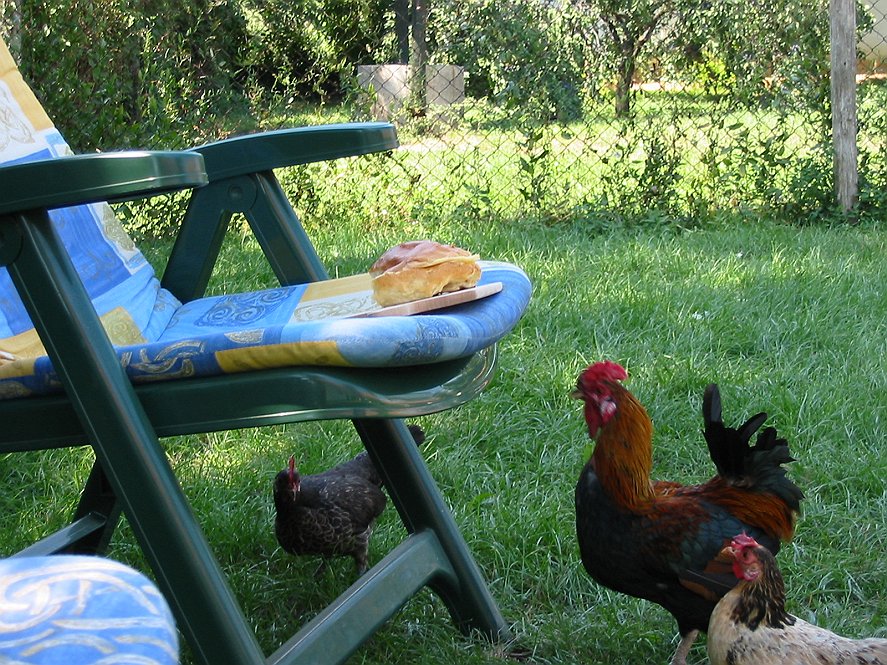 De kippen hadden het altijd in de gaten als we brood aten. Ze waren dan vooral bij Ans te vinden.