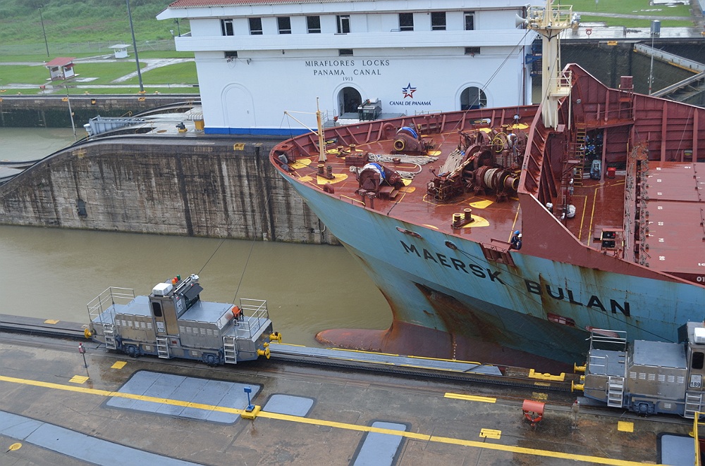 In de sluizen nemen locomotieven het werk van de sleepboten over.