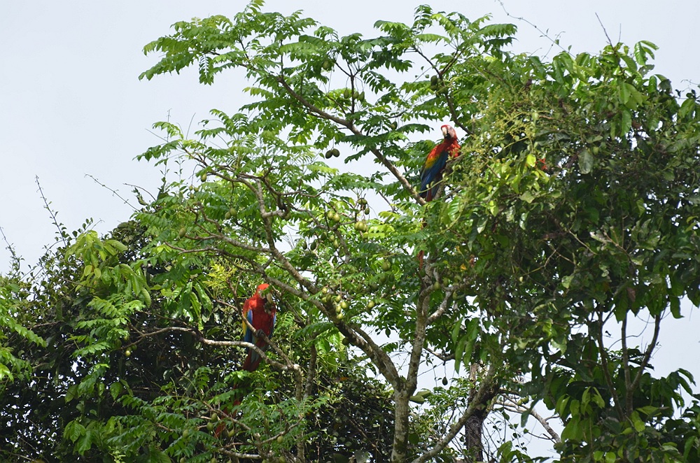 Naast de lodge zit een project waar rode ara's leren in vrijheid te overleven.