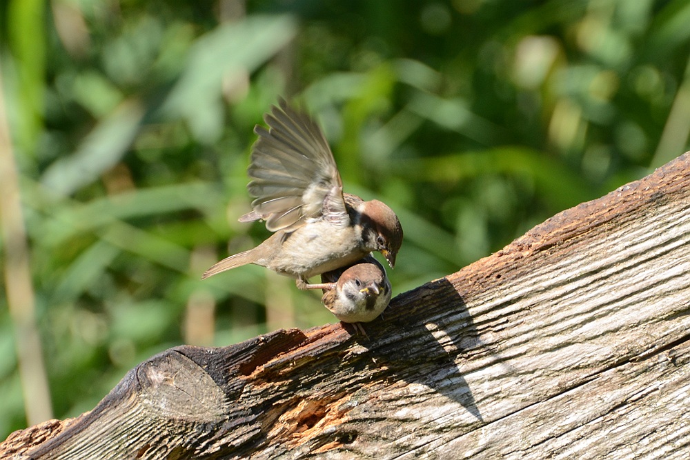Twee ringmussen vermaken zich kostelijk.