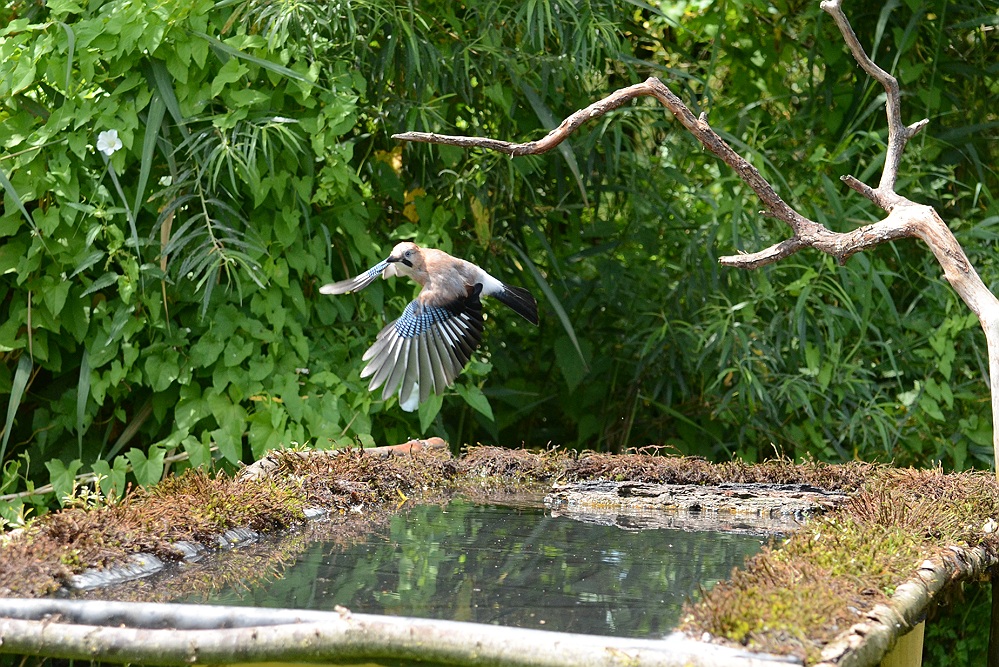 Hier zijn de prachtige kleuren in de vleugels van een Vlaamse gaai goed te zien.