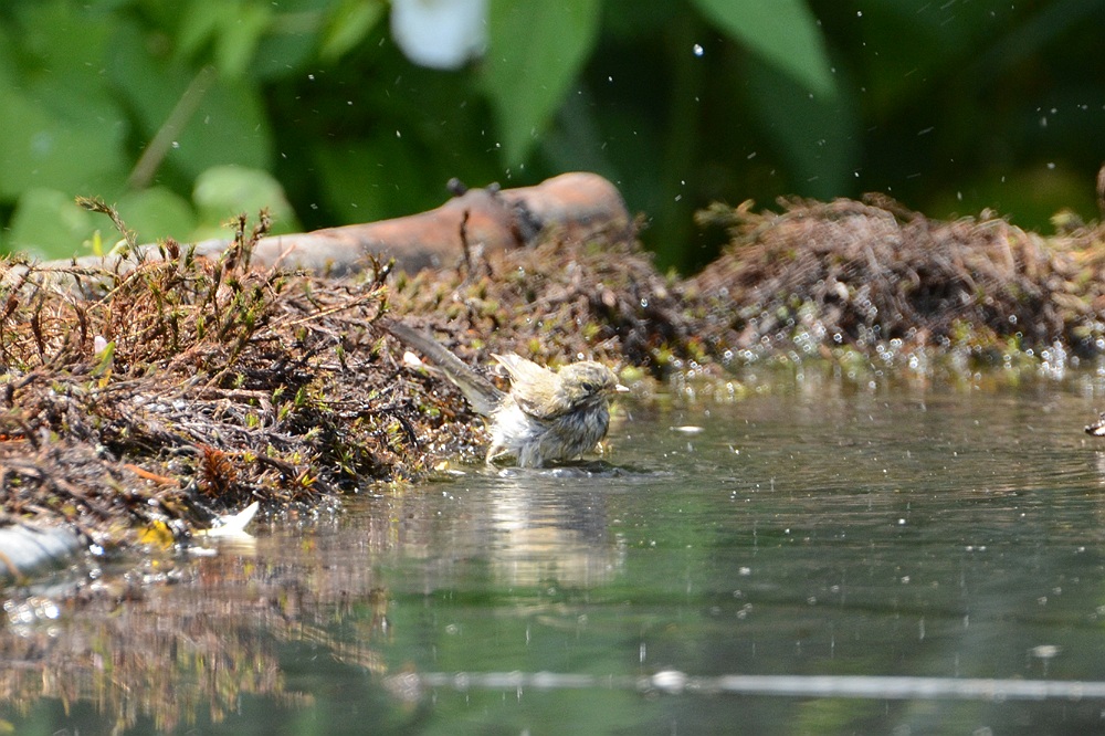 Ook deze merel is op zoek naar verkoeling.