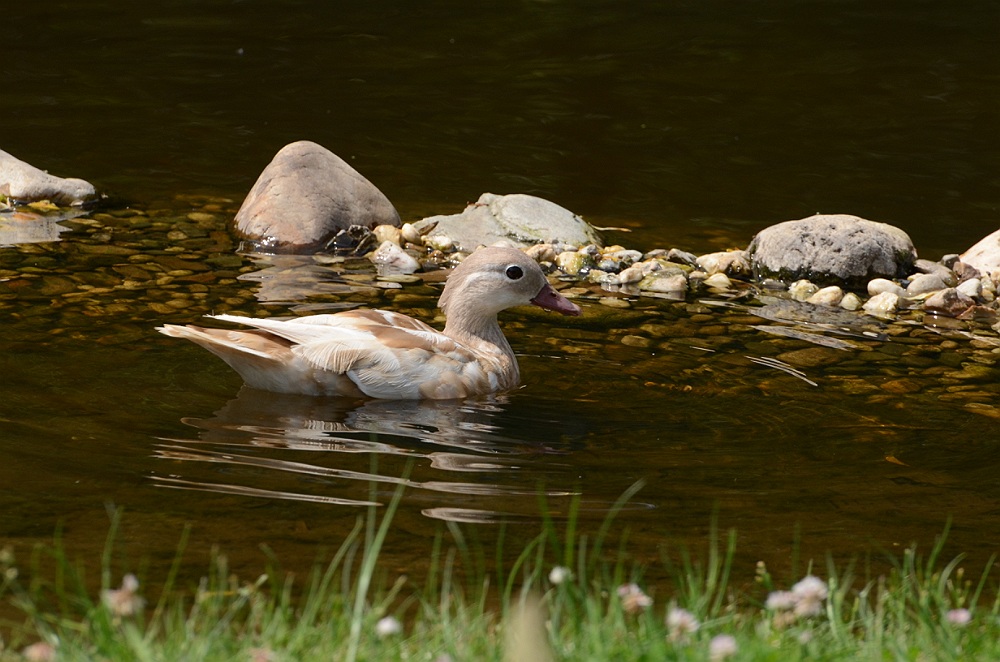 Een onbekend eendje komt voorbij zwemmen.
