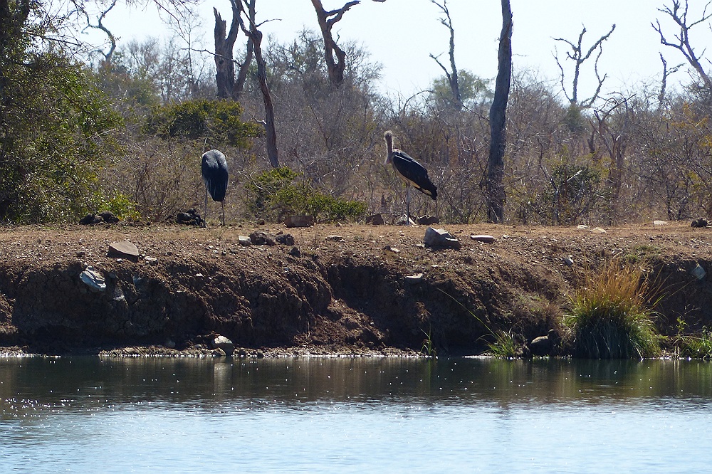 De antilopes lopen langs de maraboe weer terug naar het veilige struikgewas.