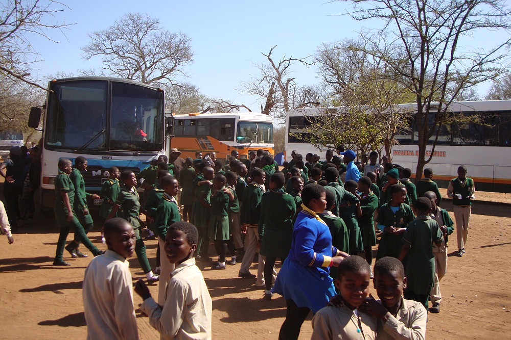 Bussen vol schoolkinderen, uit heel Swaziland, zijn vandaag naar het Park gekomen.