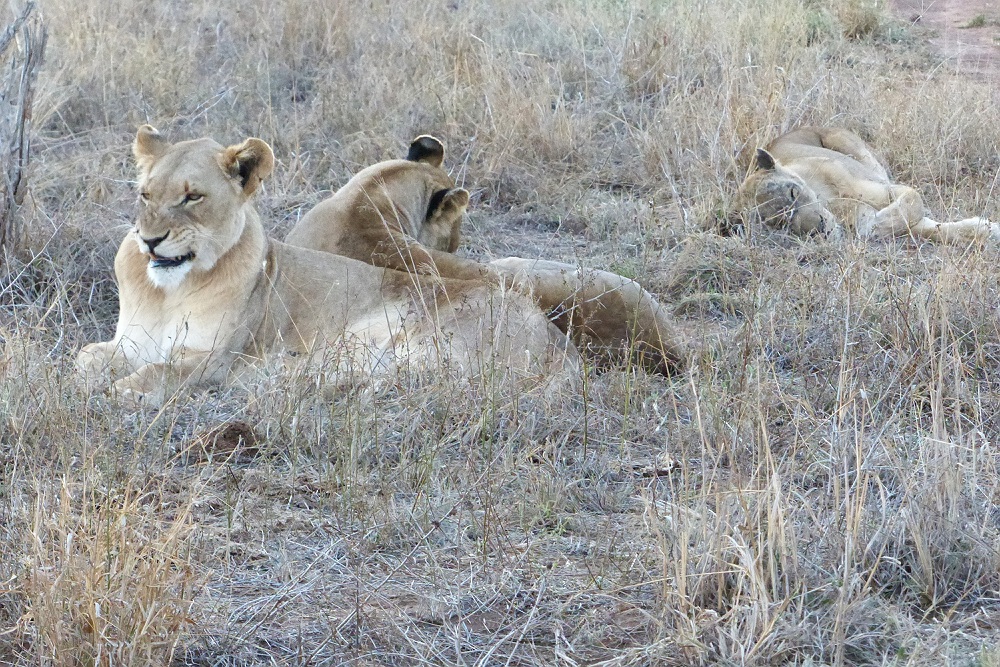 Nog een aantal leeuwinnen wordt wakker aan het eind van de dag.