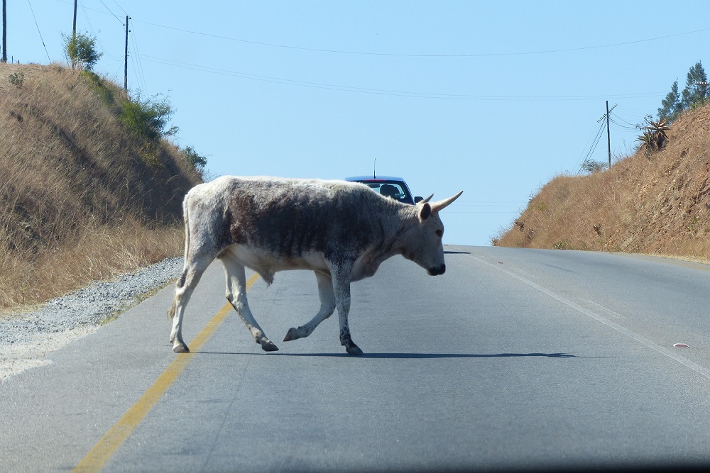 Maar ook over de grotere wegen loopt het vee los rond.