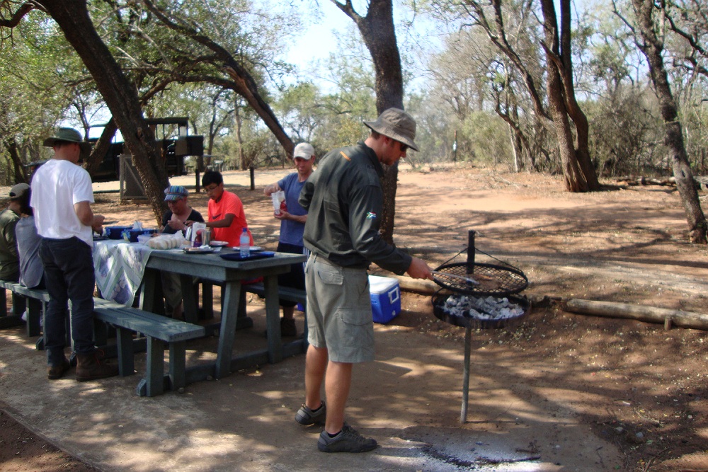 Rond het middaguur maakt onze ranger een braai, een barbeque lunch, klaar op een veilige plek.