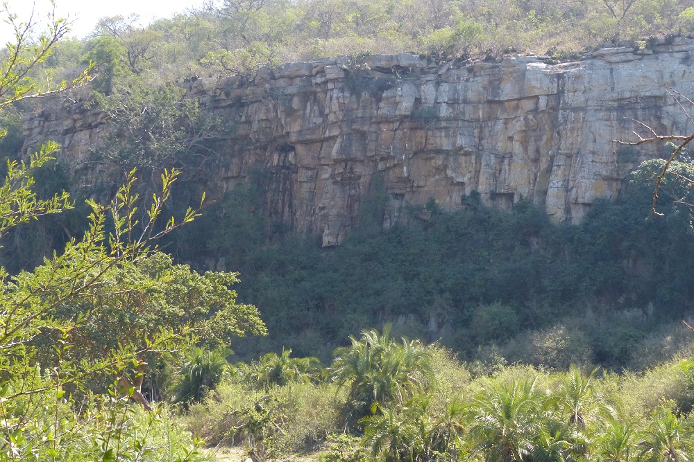 Vanaf de lunchplek heb je zicht op een rotswand waar apen rondklimmen.
