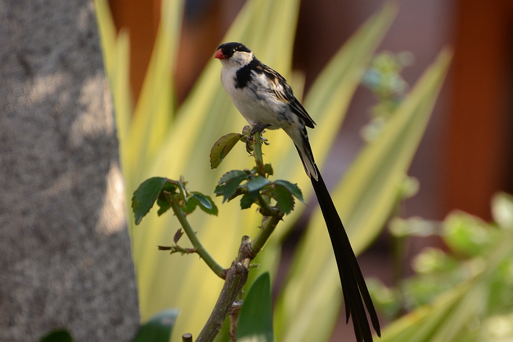 Ook deze Pin-tailed Whydah (mannetje) zit in de hoteltuin.