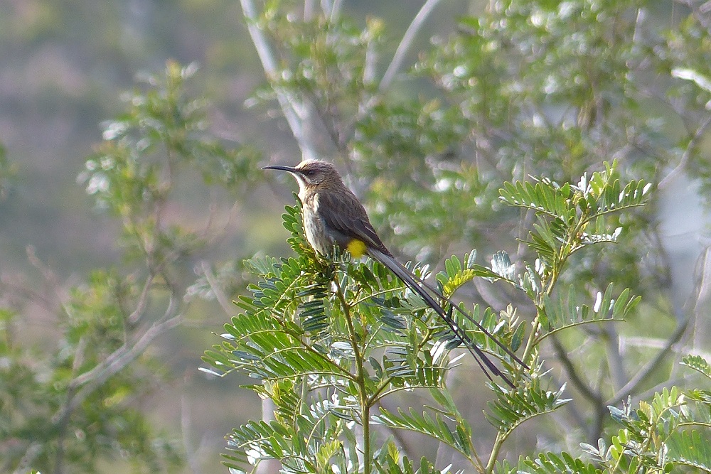 Door het hele park zie je de Cape Sugarbird.